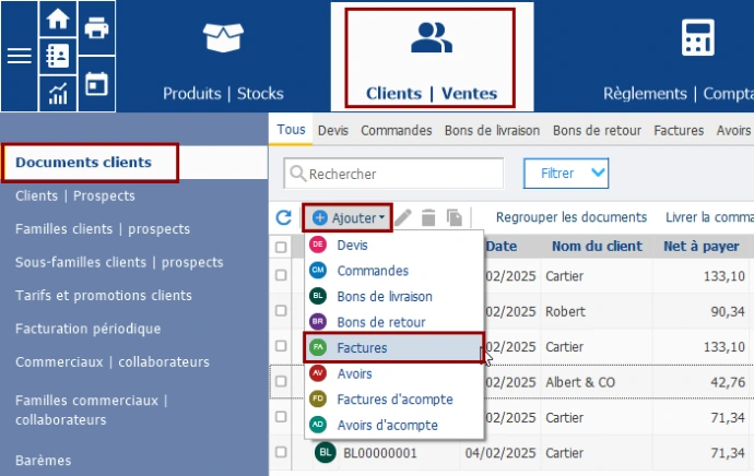 Devis, commandes, BL, factures